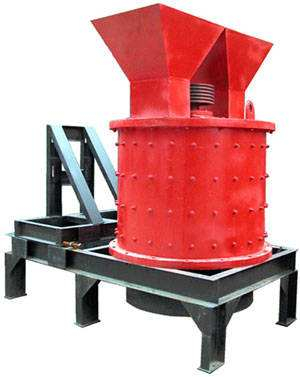 塊狀礦石由進料斗落入上破碎腔內上甩料盤上,借助甩料盤的離心力將物料拋向筒體的內壁,與安裝在內壁上的反擊板猛烈碰撞,同時物料互相撞擊,使之破碎或產生大量發絲裂紋,接著物料進入錐形轉子腔后,在錐形空間呈螺旋狀下落,經沖壓、擠壓,使已有裂紋的礦石進一步被破碎。由于錐形轉子與襯板間的斜度,促使較小的物料向下遷移,達到由大到小自動實現分級破碎。物料在錐形轉子腔內受錘頭的打擊,高速運行塊料再次與反擊板碰撞、物料流相互碰撞使物料經打擊、撞擊、剪切、擠壓面粉碎,從而提高破碎效率。